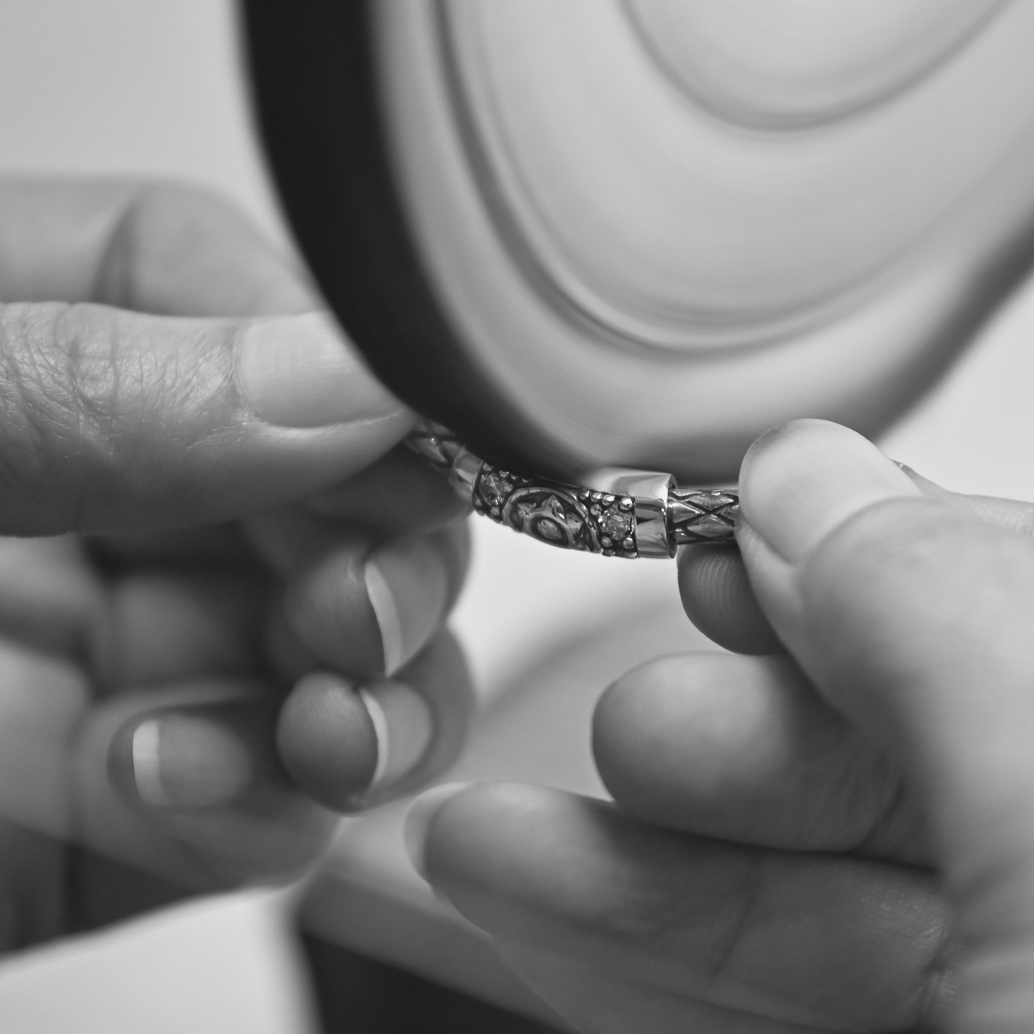 Zanim jakakolwiek Bransoleta Na Każdą Porę Roku® opuści naszą pracownię, musi przejść rygorystyczną kontrolę jakości. Pod powiększeniem i precyzyjnym oświetleniem każda bransoleta jest starannie sprawdzana przez wykwalifikowane oko — każdy szczegół, każda koralika, każde wykończenie. Tylko te, które spełniają nasze bezkompromisowe normy rzemiosła i piękna, są wybierane. To więcej niż zapewnienie jakości; to ostateczny gest szacunku dla rytuału, który każda bransoleta ma upamiętniać. Doskonałość nie jest celem — to obietnica.